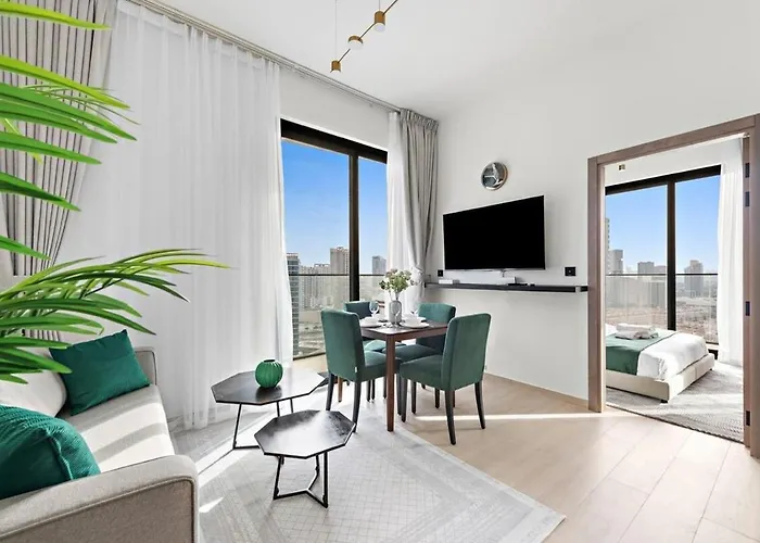 Cozy 1Br Apartment With Pool & Parking Jvc Dubai offers a living room and a kitchen, as well as comforts like climate control. For added convenience, a shower are available at the accommodation.